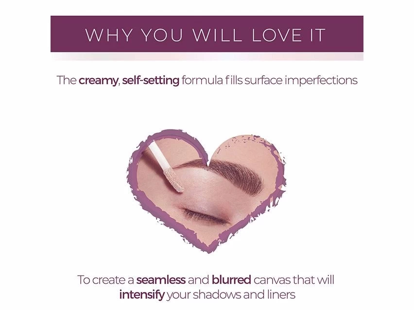 The mousse formula smooths the lid to make it easier to apply and blend shadows for a seamless look. Just a small amount of product covers the entire lid and the lower lash line so you can apply shadows anywhere you want. It also helps diminish redness, fine lines and darkness on the lid. Anti-aging ingredients are proven to create a smoother surface and add more moisture to the lids.
