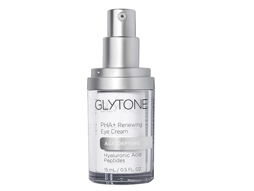 Glytone Age-Defying PHA+ Renewing Eye Cream brightens and hydrates skin.