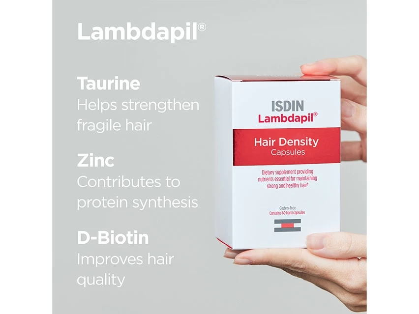 ISDIN Lambdapil Hair Density Daily Hair Supplement for Thinning Hair supports hair for renewed strength and vitality.