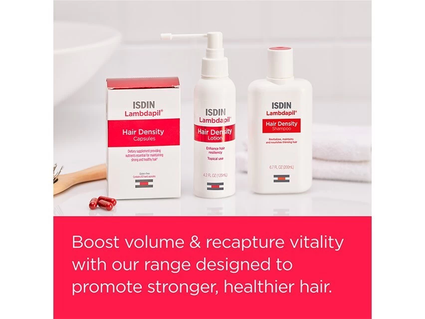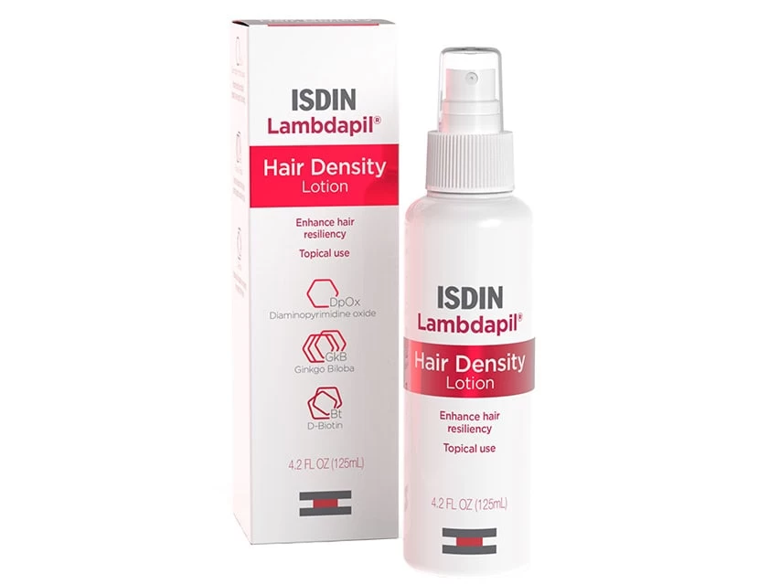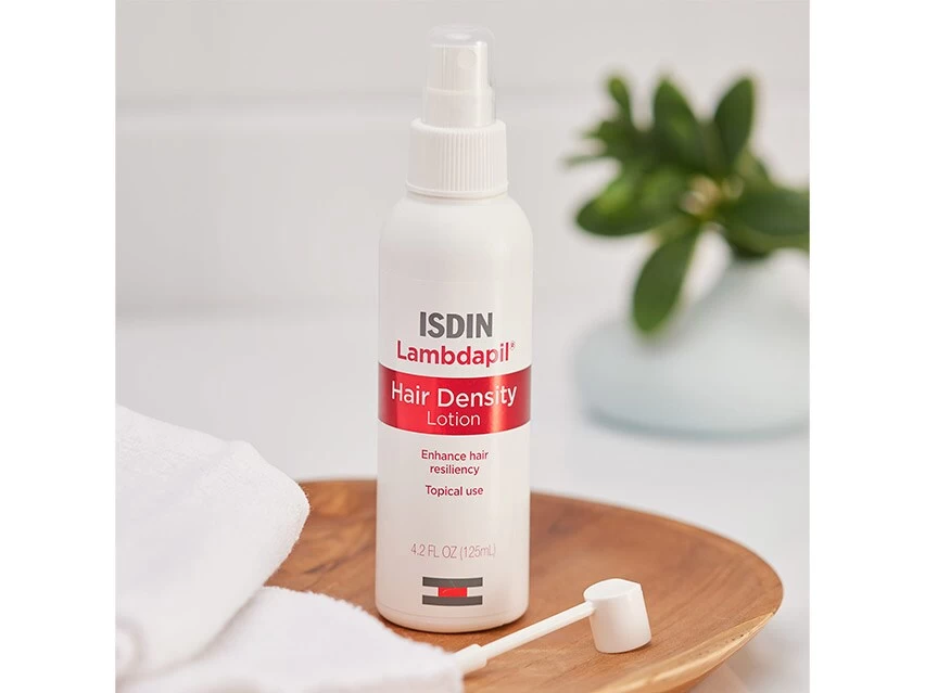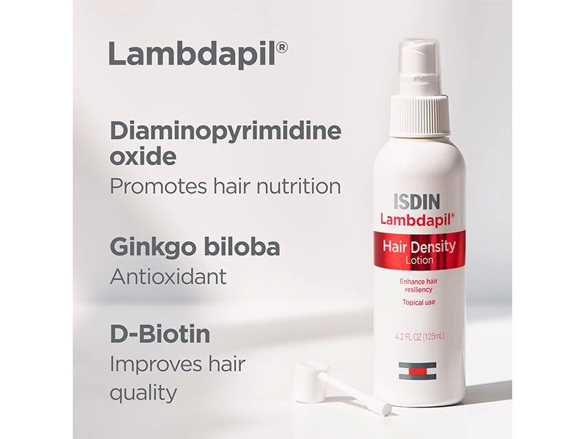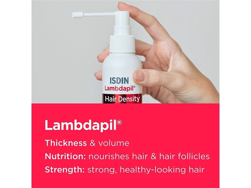 ISDIN Lambdapil Hair Density Thickening & Boosting Leave-on Lotion strengthens hair and provides nutrients to weak hair follicles.