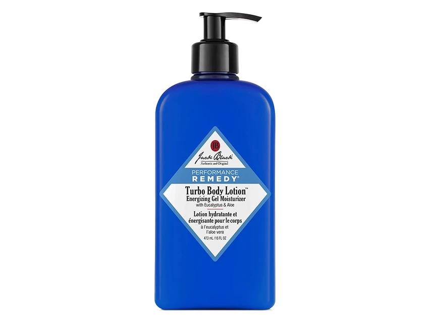 Care for dry skin on the body with Jack Black Turbo Body Lotion Energizing Gel Moisturizer.
