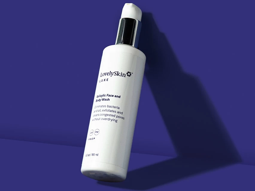 LovelySkin LUXE Salicylic Face and Body Wash promotes a clear and luminous complexion.