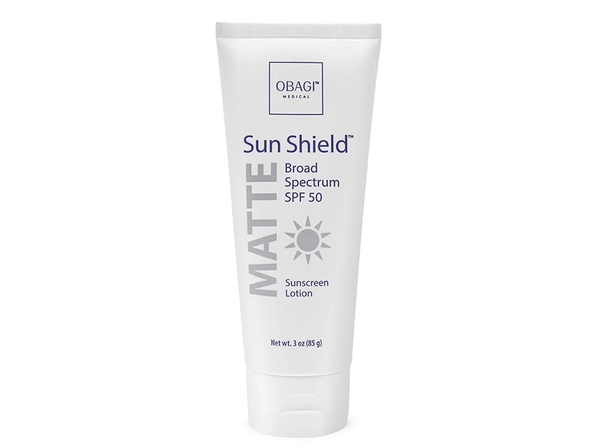 Protect your complexion with Obagi Sun Shield Matte Broad Spectrum SPF 50 Reef Safe Sunscreen.